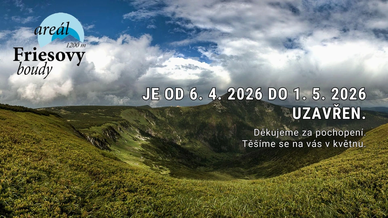 Areál Friesovy boudy je od 6. 4. do 1. 5. 2026 dočasně uzavřen.